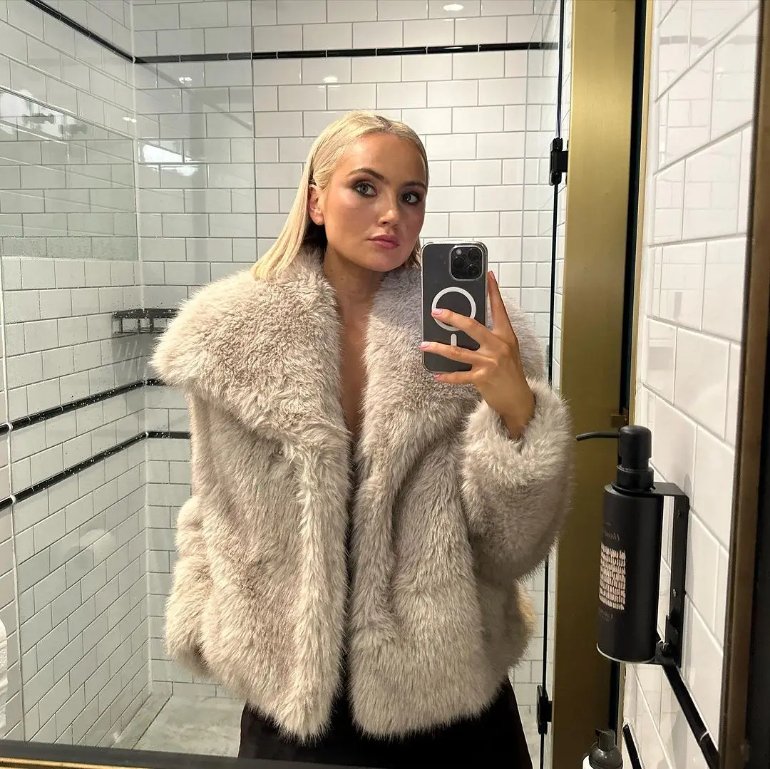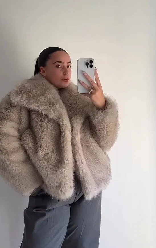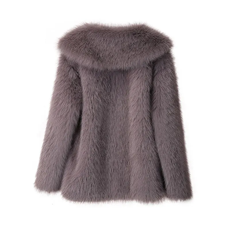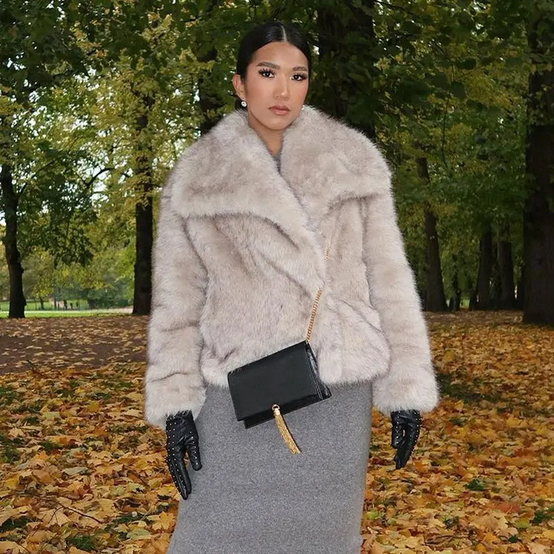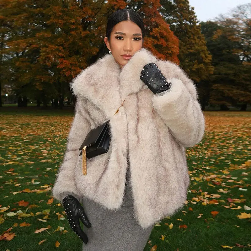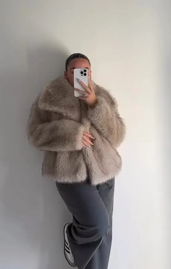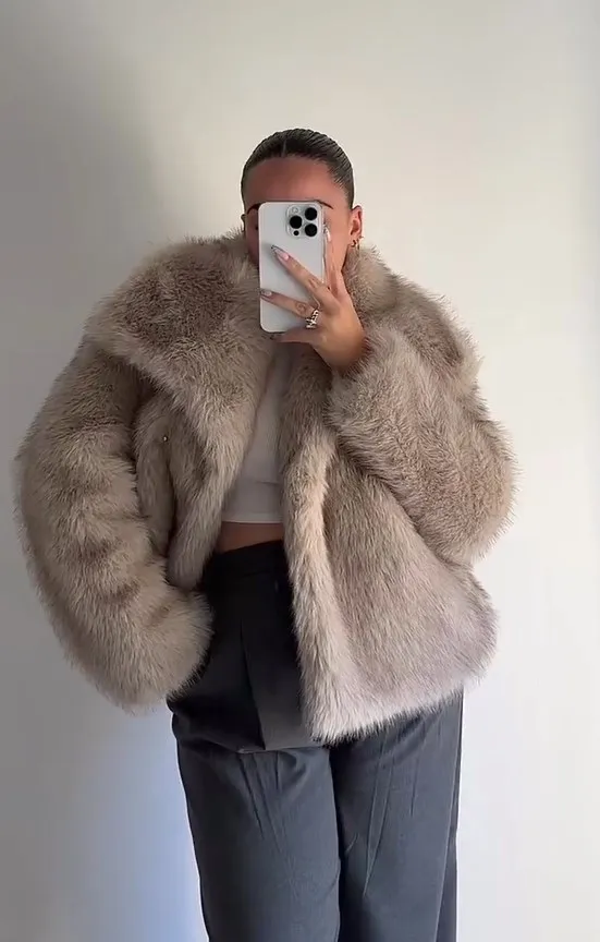 Elegant fluffy faux fur coat