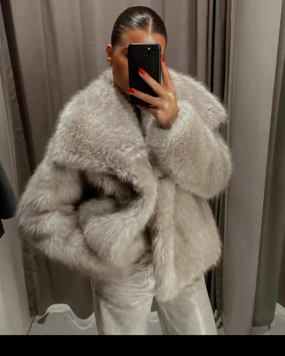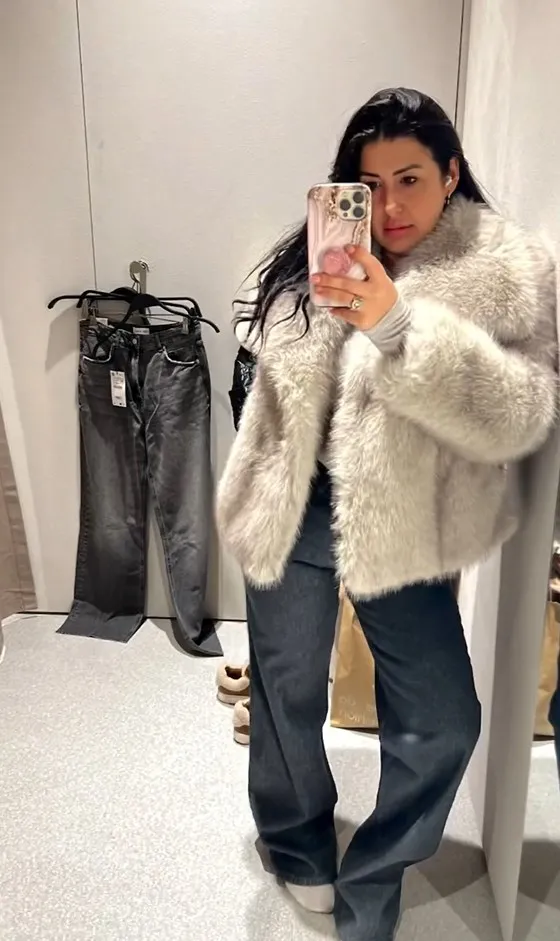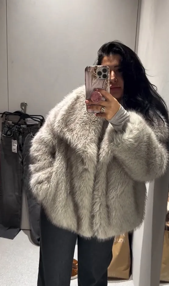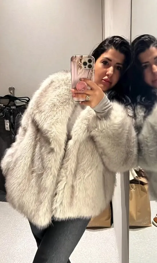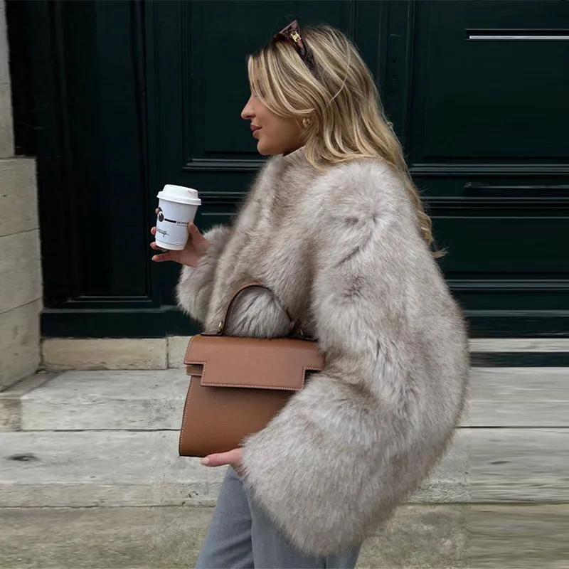 Elegant fluffy faux fur coat