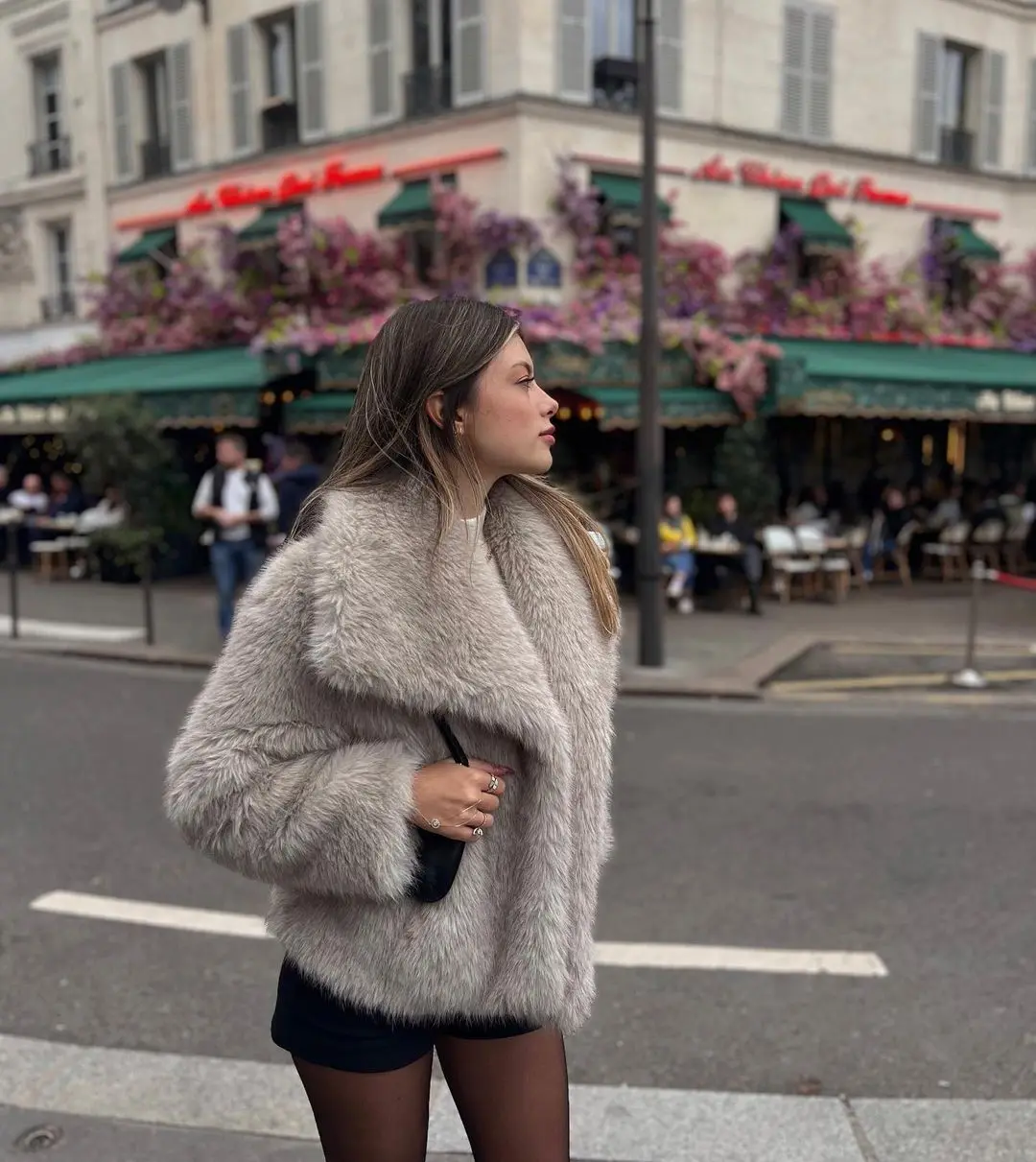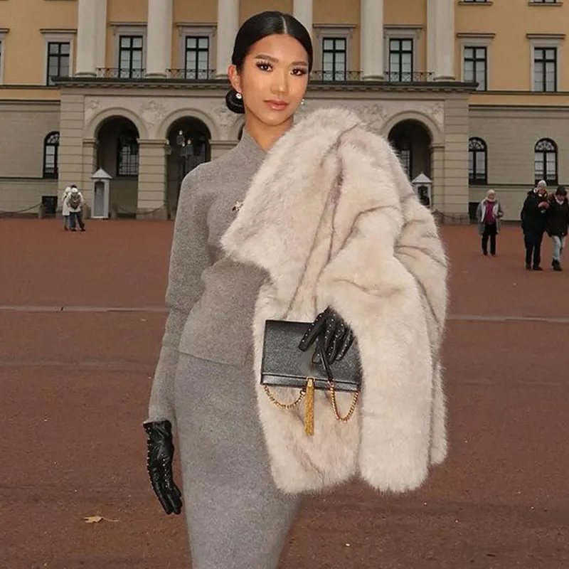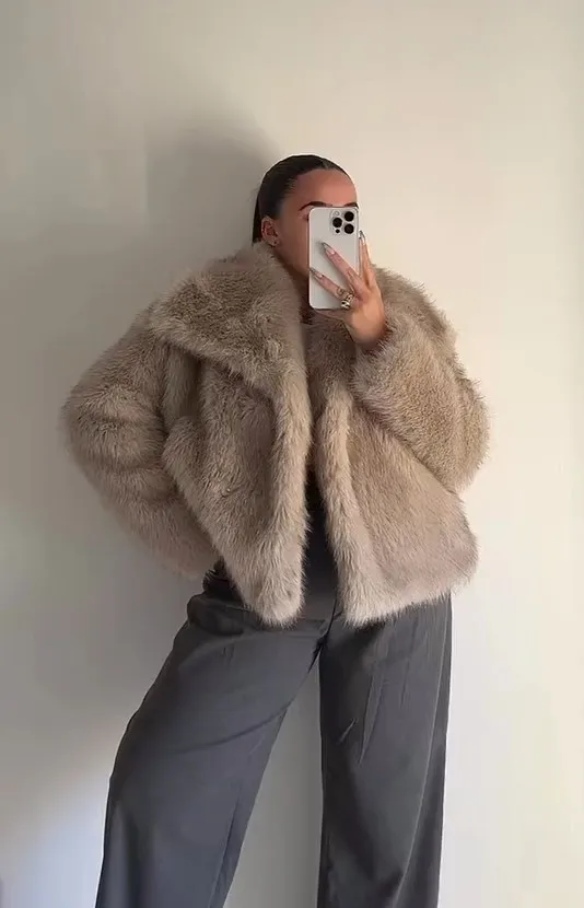Women’s Elegant Lapel Fluffy Faux Fur Coat Warm Long Sleeve