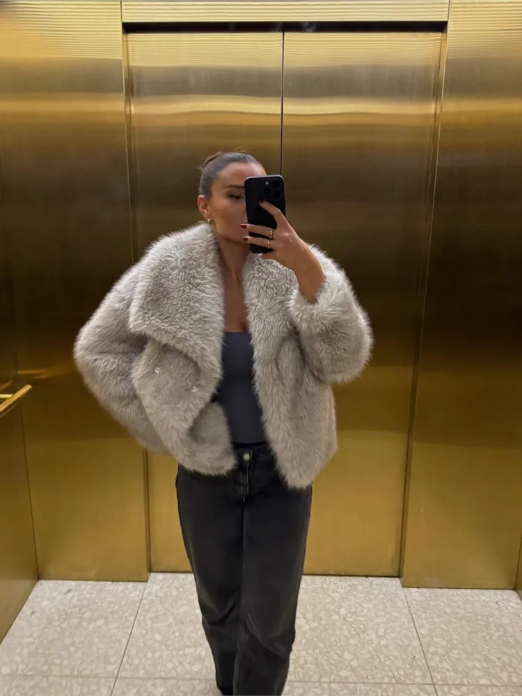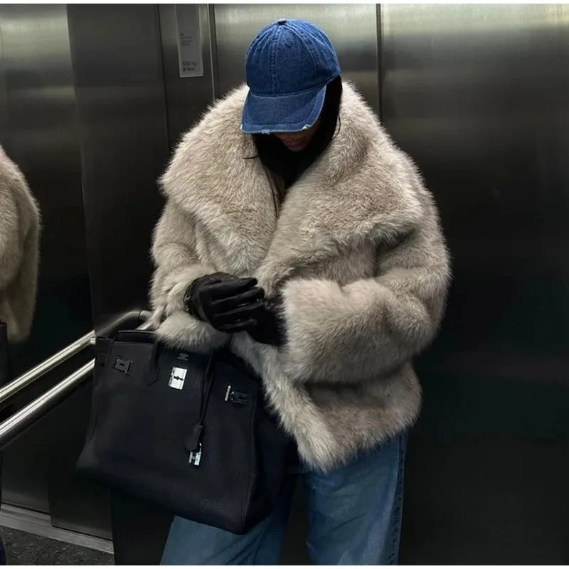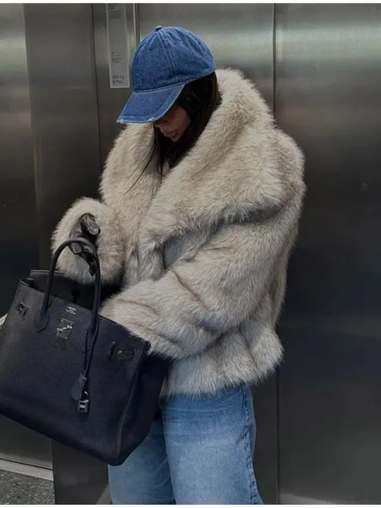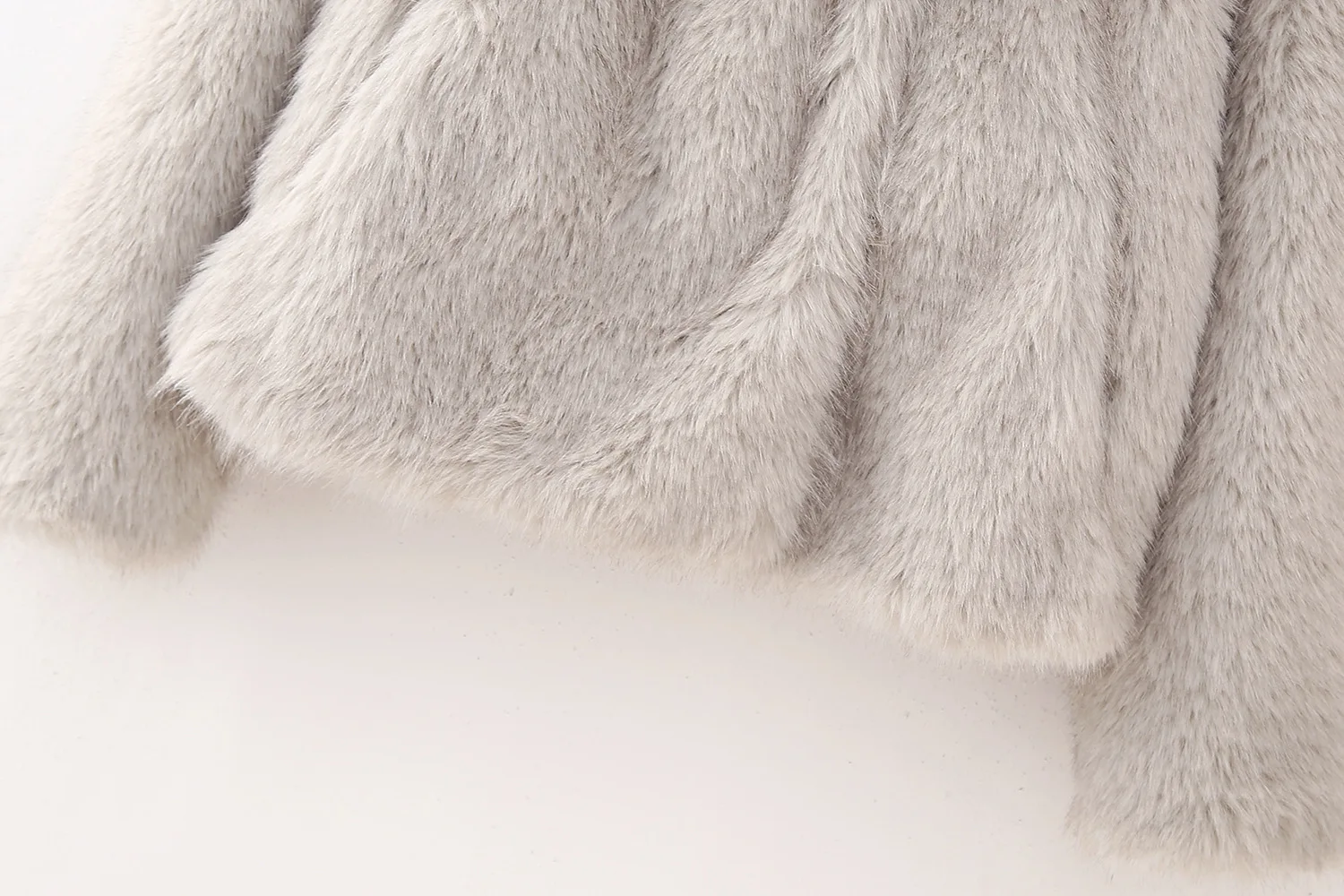 Women’s Faux Fur Lapel Coat Shaggy Warm Long Sleeves Open Front