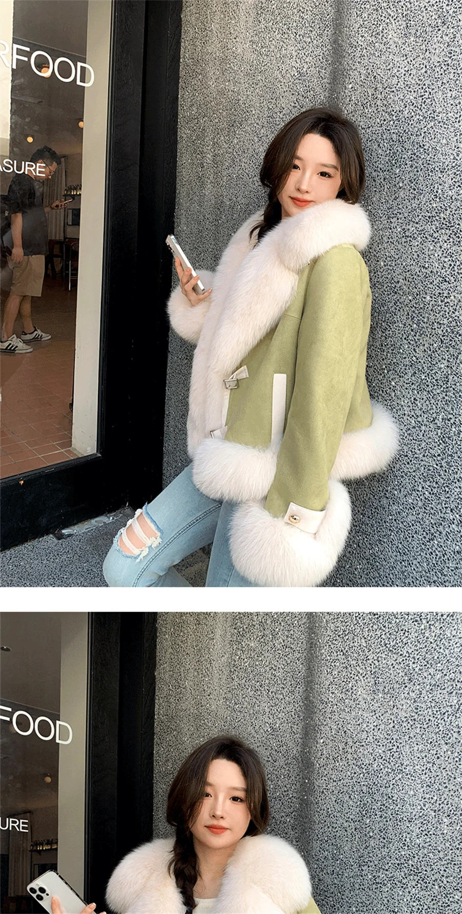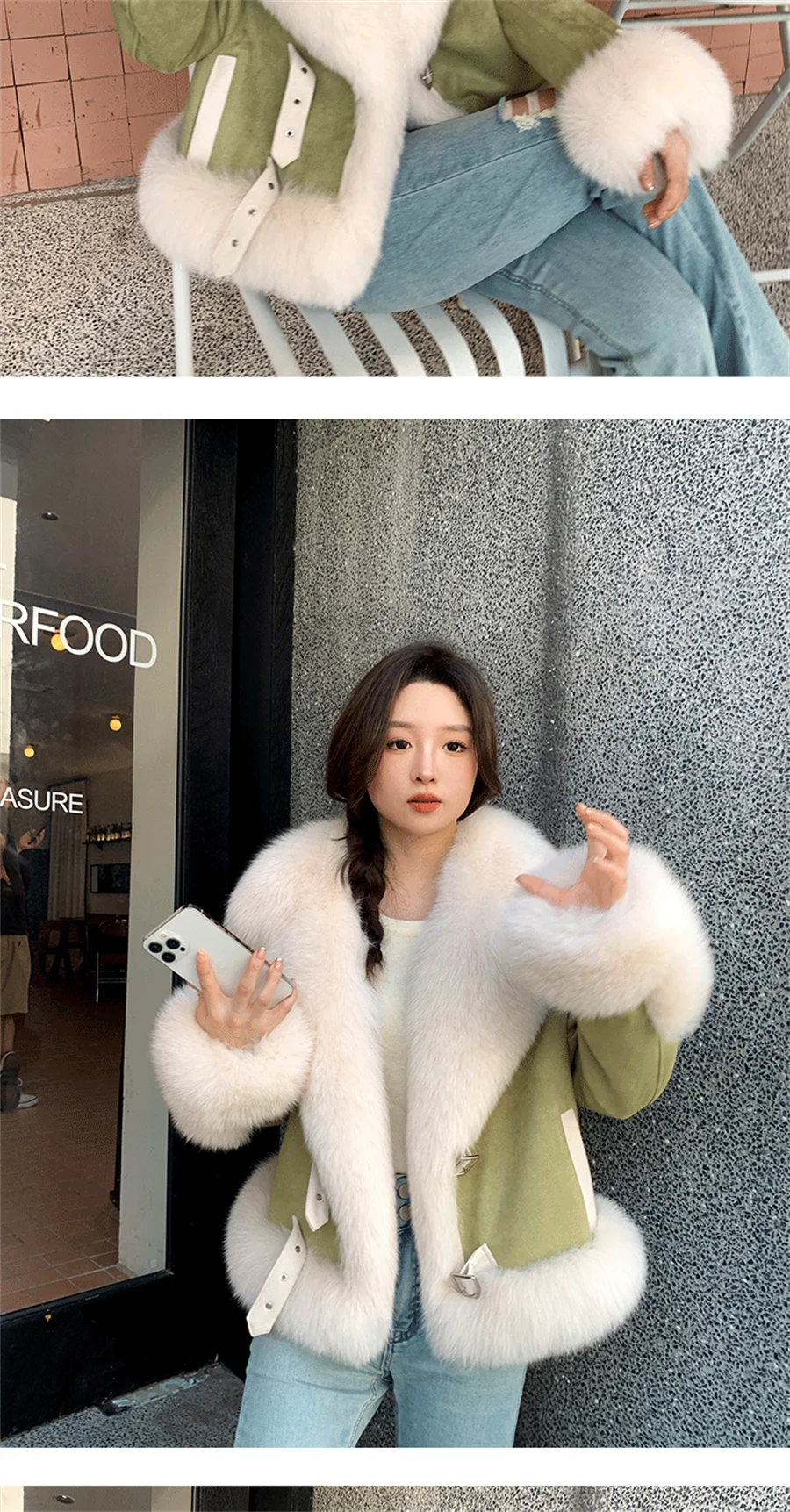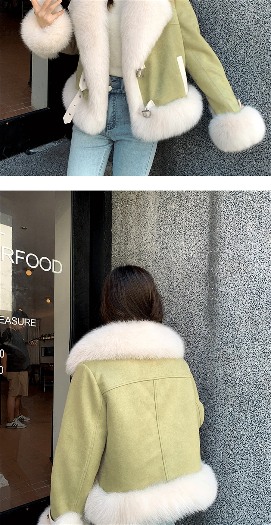 The soft faux fur exterior will keep you cozy and chic all season long, while the sleek design and tailored fit give a sophisticated and flattering silhouette.